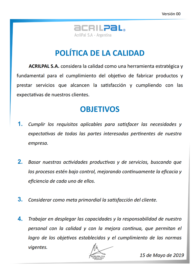 Continuando de esta manera, con la visión y objetivos planteados por la Dirección, en el camino de evolución y superación constante, que impacta directamente en los productos y servicios ofrecidos a nuestros clientes.
